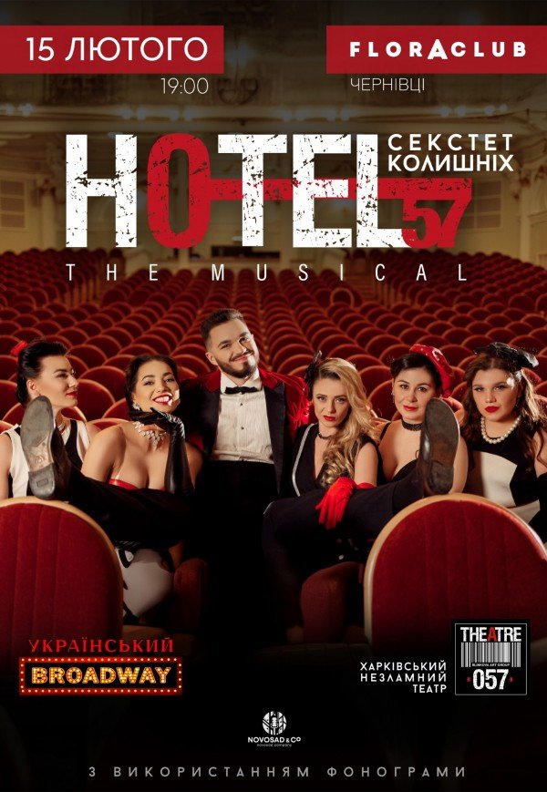 Мюзикл «HOTEL "57": секстет бывших» состоится 15 февраля 2026, 19:00, воскресенье в Flora Club. С помощью сервиса internet-bilet.ua, Вы сможете с легкостью забронировать, заказать и купить билеты на интересующий Вас концерт, спектакль, оперу, балет, мастер-классы, спортивные и детские мероприятия, оплатив их самым удобным для Вас способом: через интернет банковской картой VISA/MasterCard, наличными или курьером, если сделаете заказ билета c доставкой.