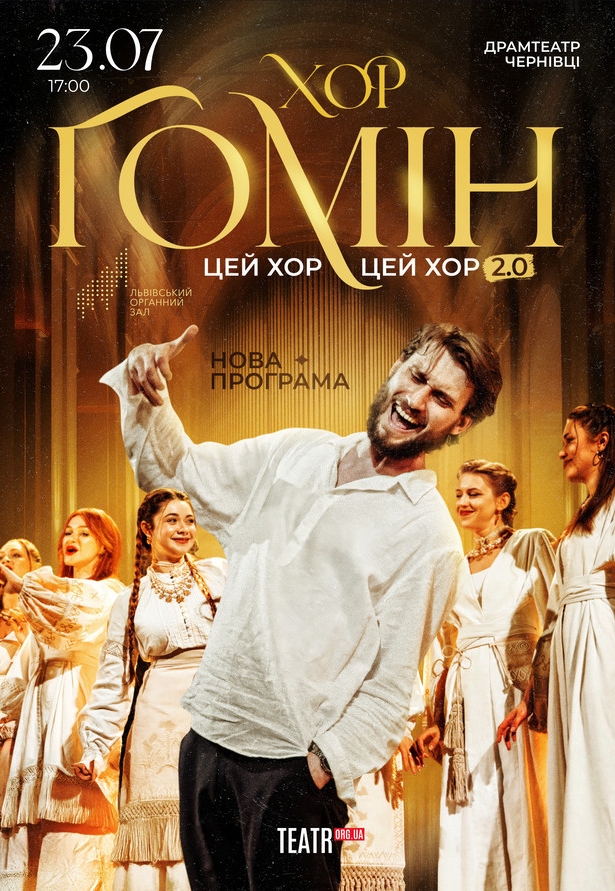 Хор "Гомін" відбудеться 23 липня 2026, 17:00, четвер в Чернівецький драмтеатр ім. О. Кобилянської. За допомогою сервісу internet-bilet.ua, Ви зможете з легкістю забронювати, замовити та купити квитки на концерт, спектакль, оперу, балет, майстер-класи, спортивні та дитячі заходи, що Вас цікавлять, оплативши їх найбільш зручним для Вас способом: через інтернет банківською карткою VISA/MasterCard, готівкою або кур'єром, якщо зробите замовлення квитка з доставкою.