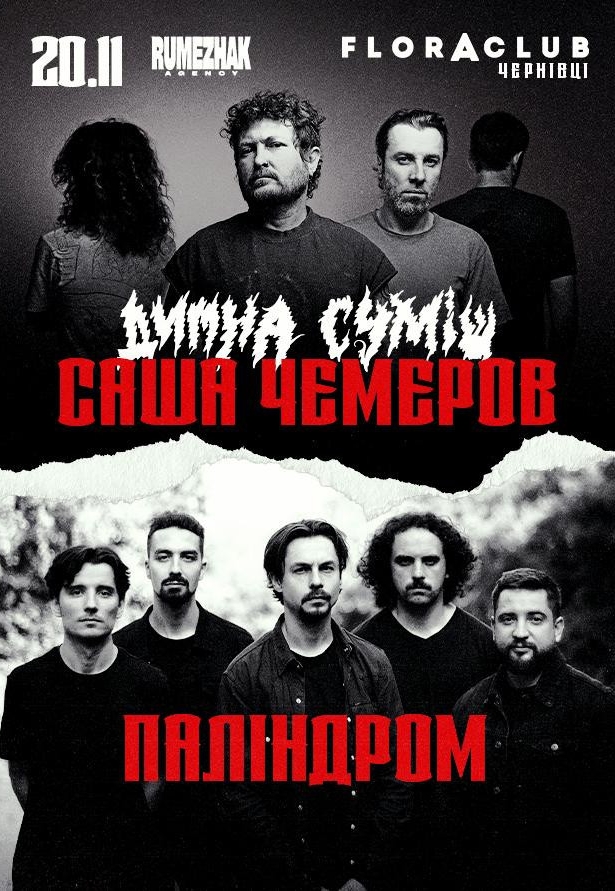 Чемеров і Паліндром — це зіткнення двох світів, енергії й сенсу, бунту й поезії. Дві стихії - рок+реп в серії спліт-концертів в чотирьох містах України.